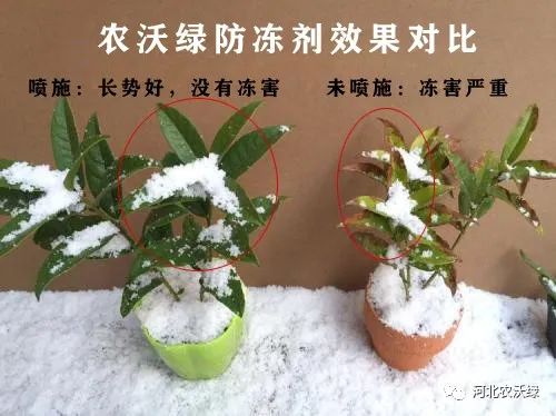相比于未噴施的植物,噴施農(nóng)沃綠防凍劑的植物,長勢好,沒有凍害。
